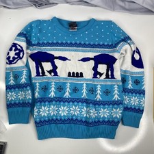 Numskull Size S Starwars AT-AT "Ugly" Christmas Sweater Blue READ