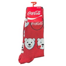 1 Pair Coca-Cola Socks Christmas Coke Bear - Size 6-12 - Licensed Socks new