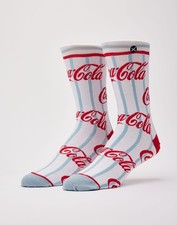 Odd Sox Coca Cola Soda Striped Mens One Size Crew Socks White Red Novelty 8-12