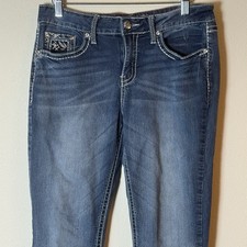 Antique Rivet Women’s 34 Bootcut Jeans Flap Pocket Rhinestone Distressed