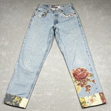 Vintage Old Navy Straight Jeans Womens 28 Blue Floral Baggy Antique Pockets