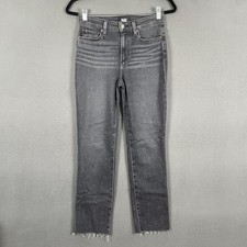 Paige Cindy Jeans Womens 29 Antique Black Mid Rise Straight Raw Hem Whiskering