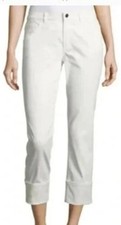 Lafayette 148 Wide Cuff Cropped Jean Antique White 16/33 Stretch Designer Denim