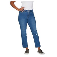 Denim & Co Antique Denim Jeans Functional Fly Ankle Pants Fray Hem New