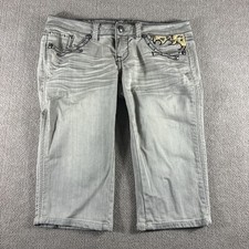 Antique Rivet Jeans Juniors 29 Gray Capri Cropped Embroidered Studded Pockets