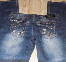 Antique River Dark Wash Bootcut Jeans Rhinestone Embellished Distressed Size 31