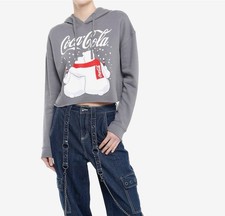 Hot Topic/Ripple Junction Coca-Cola Polar Bears Grey Crop Hoodie Large