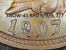 1907 Indian Head Cent - AU DETAILS SNOW-41, REPUNCHED DATE (J611)