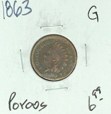 1863 INDIAN HEAD CENT ~ GOOD ~ POROUS ~NICE COIN~ REF# N