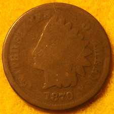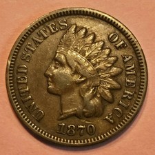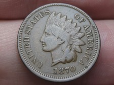 1870 "Shallow N" Indian Head Cent. Rare key date!