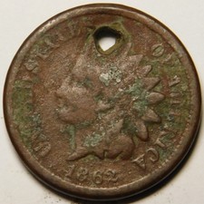 1862 Indian Head Cent F-Details Copper Nickel (C/N) "Actual Coin Pictured"