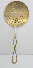 Vintage Brass Strainer Hand Skimmer Antique Primitive Kitchen Decor 15''