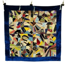 ANTIQUE VICTORIAN 1886 SILK VELVET CRAZY PATCHWORK QUILT ~ 44"x44"