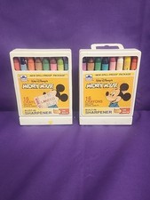 Vintage Walt Disney Mickey Mouse Golden 16 Crayons Built-in Sharpener Free Shipp