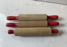 3 Vintage Play Toy Kitchen Wooden Baking Rolling Pins 7.5" and 6.5" Red Handles