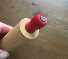 Vintage 7" Wooden Rolling Pin Childs Kids Kitchen Toy Miniature Mini Red Handle