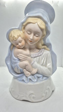 Vintage 1980 ROMAN Madonna and Christ Child Porcelain Music Box Figurine Works!
