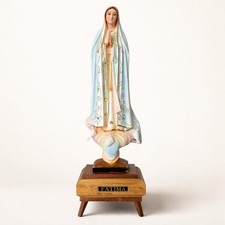 VINTAGE STATUE OF OUR LADY OF FATIMA, NON WORKING MUSIC BOX ON WOODEN BASE