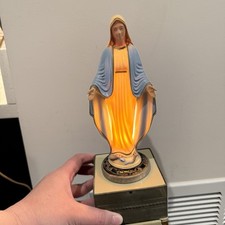 Vintage Virgin Mother Mary Music Box Rosary Secret Drawer Night Light Lamp MCM