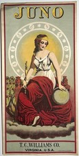 1900 JUNO ROMAN GODDESS TC WILLIAMS TOBACCO CADDY CRATE LABEL HOEN RARE ANTIQUE!