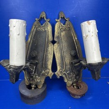 Antique vintage Brass dble Candlestick light lamp sconce shield goth Victorian