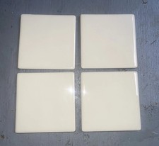 Lot 4 pc White Ceramic Tile 4 1/4 Vintage FT Mid Century 4x4 Light Tan White