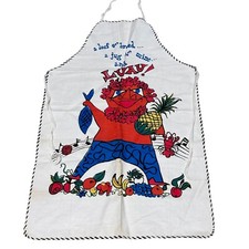 BBQ Mid Century Vintage Cloth Apron Hawaiian Luau A Loaf Of Bread A Jug Of Wine