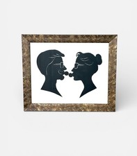 Mid Century Modern Couple Silhouette Papercut Wall Art Framed 15x18 Vintage