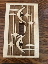Mid-Century Modern Inspired Switch Plate Cover In Maple Ply Crescent And Star