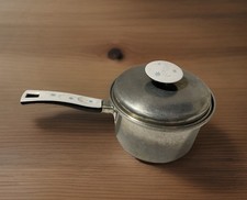 Vintage Atomic Starburst Blue Sauce Soup Pan w/Lid White Knob 6 Cup Mid-Century