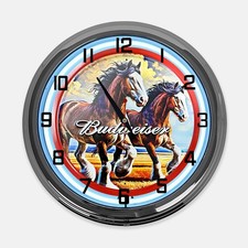 18" Budweiser Clydesdales Metal Sign Designed White Neon Clock