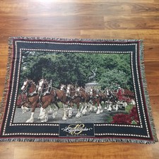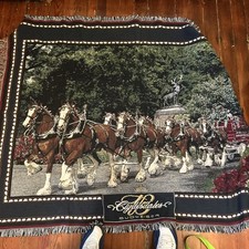 Vintage Budweiser Clydesdale Horse Fringe Tapestry Throw Lap Blanket Knit
