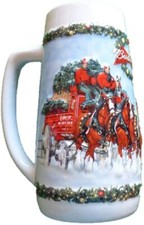 Vintage Anheuser-Busch Budweiser Clydesdale Carriage Holiday Beer Stein Mug