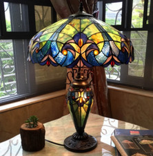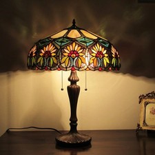 Tiffany style Stained Glass Bedside Desk lamp Vintage Shade Table Lamp 18" Tall