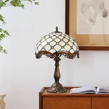 Tiffany Style Table Lamp Beige Baroque Stained Glass Antique Night Light H 14"