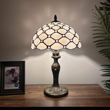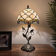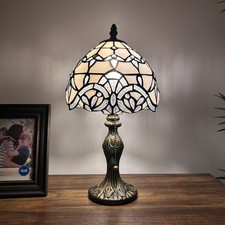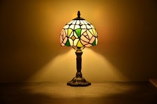 Tiffany Style Mini Table Lamp White Stained Glass Baroque Style LED Bulb 8"W15"H