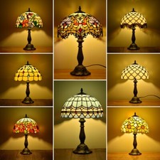 Tiffany Table Lamps Bedside Stained Glass Vintage Decor Bedroom Desk Light 14"