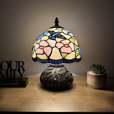 Tiffany Table Lamp Vintage Accent Lamp Floral Stained Glass Bedside Lamp H 14"