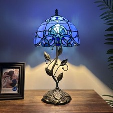 Lamp Tiffany Glass Stained Shade Table Tree Night Desk Bed Room Side Accent Blue