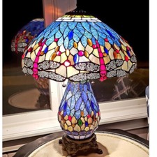 Handmad Table Lamp Dragonfly Tiffany Style Stained Glass Home Decor 14"/18" Tall