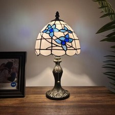 Tiffany Style Mini Table Lamp White Stained Glass Blue Flower 8"W*8"D*15"H