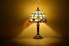 Tiffany Style Table Lamp White Stained Glass Crystal Bean LED Blub 12"W*19”H