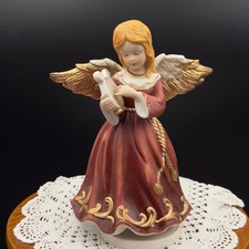 Vintage 7” Tall Angel with Harp spinning Music Box Figurine Gold Wings Harp