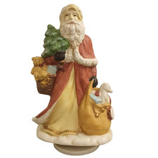 Vintage Porcelain Santa Music Box Spinning Christmas Figurine 8.5" Collectible