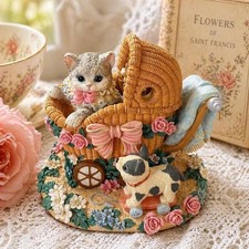 Vintage San Francisco Music Box Company Cat Pram Figurine Cottagecore Kitten