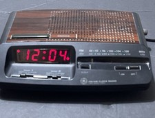 Vintage Alarm Clock General Electric AM/FM Radio Model 7-4601A Woodgrain Nice