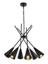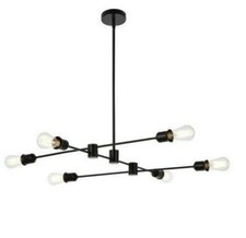 Chandelier Black 6 Light Mid-Century Modern Pendant Dining Room Ceiling Lighting