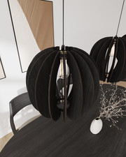 Mid Century Modern Wood Pendant Light - Oak Veneer Hanging Lamp Ceiling Fixture