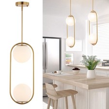 Modern Gold Globe Chandelier 2-Lights Mid Century Pendant Light Brushed Brass...