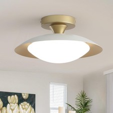 Dimmable Mid Century Modern Ceiling Light Fixtures Flush Mount, White and Gol...